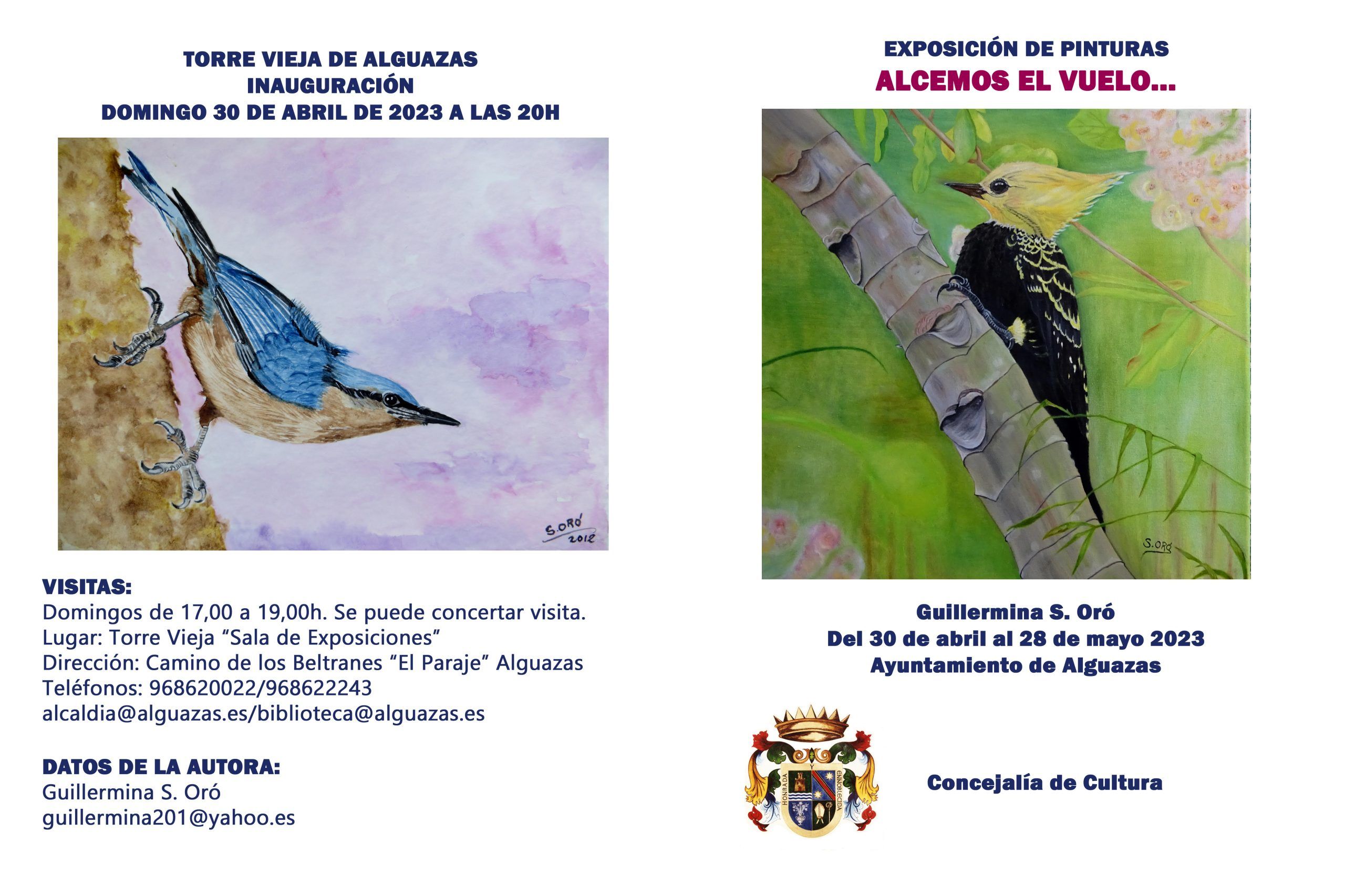 Es la cuarta vez que voy a exponer en Alguazas y cada vez que lo hago me encuentro como en casa. Esta colección “Alcemos el vuelo” que expongo son en su mayoría acuarelas donde aparecen una serie de anumales voladores. Entre ellos, las aves me emocionan por sus formas de vida, por su colorido, por su avidez en el vuelo y sobre todo por la forma tan original que tienen para sobrevivir en este mundo que lleva una gran cantidad de cambios climatológicos que hacen que varíen sus costumbres en cuanto a la emigración en las estaciones.