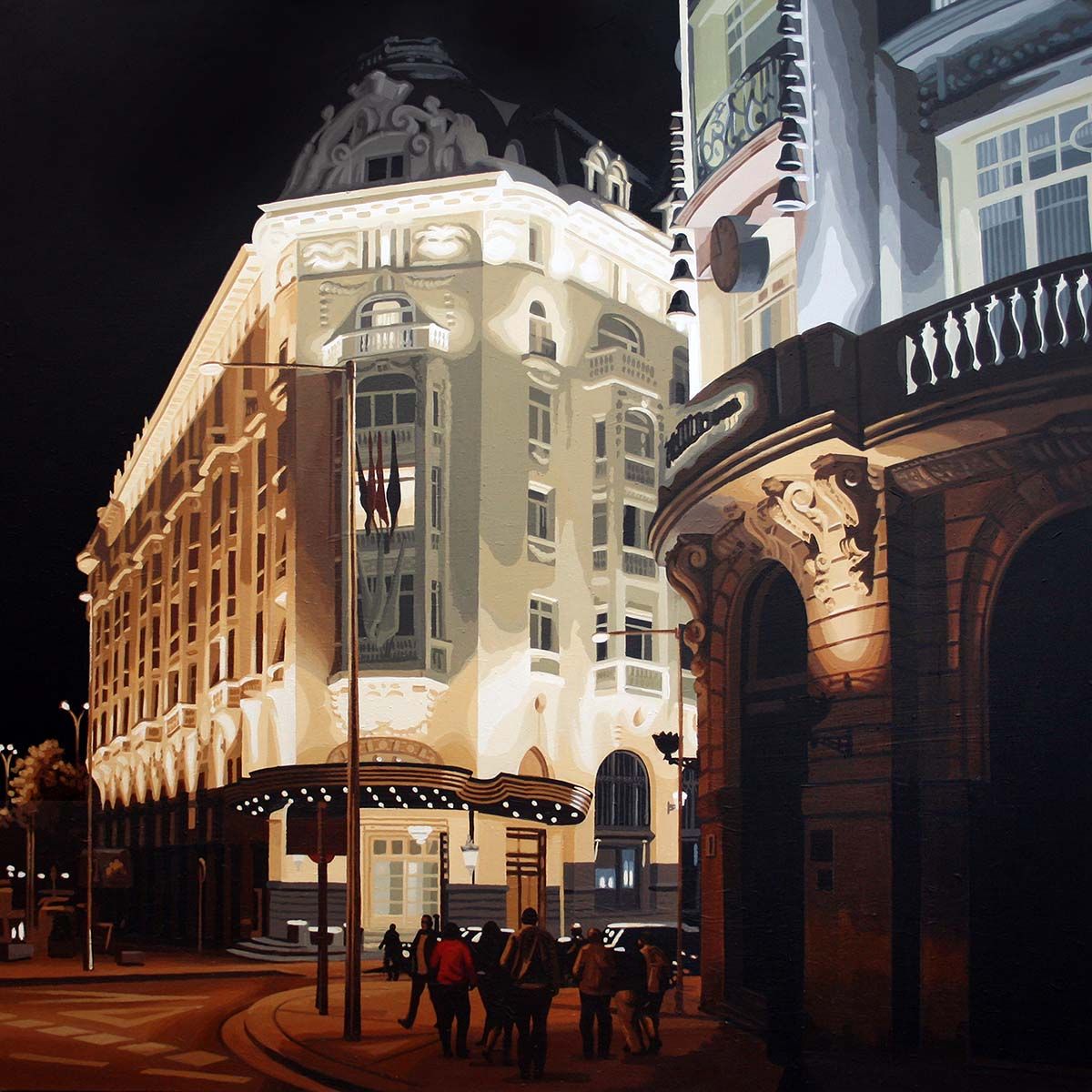 La pintora cartagenera, afincada en Madrid, Rosana Sitcha, nos vuelve a sorprender con una colección nueva de obras en acrílico sobre el paisaje urbano. La autora nos sumerge en las entrañas humanas y arquitectónicas de las metrópolis que visita y reflexiona, porque la artista elije meticulosamente las calles, las plazas, las avenidas… que desea trasladar a sus cuadros, donde se enfrenta de manera sobresaliente para retratar la luz, la oscuridad y los reflejos de las cities que observa. Después hace un dibujo preparatorio a lápiz y a continuación inicia la aplicación de sucesivas capas planas de pigmentos de color. Esta joven pintora ha intervenido en 207 exposiciones colectivas y en 22 individuales. Sus obras están expuestas en el Estudio-Galería La Cholepa, de Mula, que dirigen con gran acierto Andrés García Mellado y Mari Carmen Imbernón. Las “Ciudades anónimas” de Sitcha van creciendo en calidad pictórica y en nuevos encuadres con reflejos infinitos.