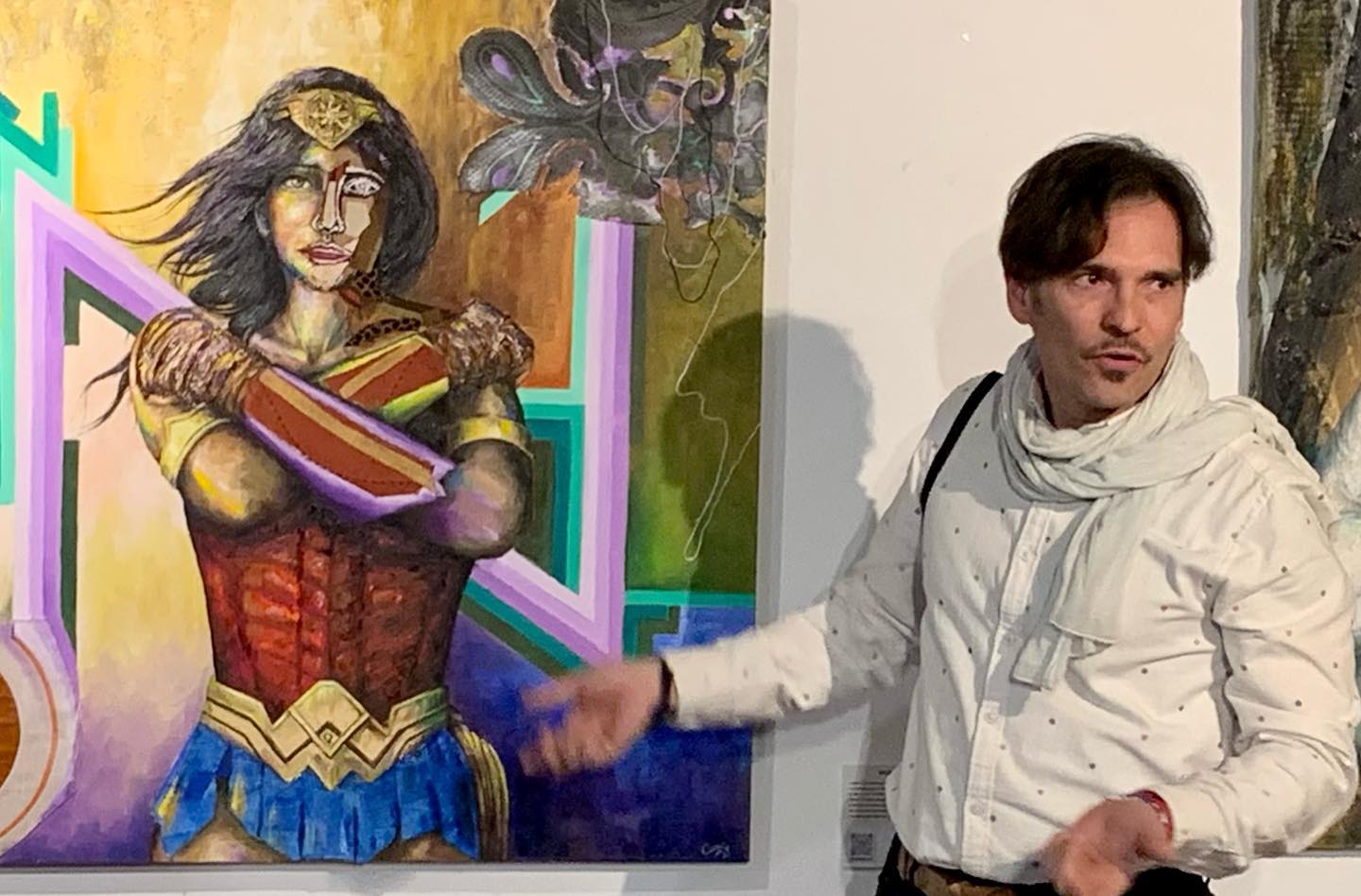Nos situamos así en un arte de Vanguardia, en el que trabajamos una corriente: el “Collage Pictórico-Textil sobre lienzo en bastidor”. En la muestra se respeta la libertad de expresión y creación de cada artista, que, con el tejido y las fibras textiles como materiales de búsqueda de emociones y reacciones, humanizan a los Superhéroes, al llevarlos a un lenguaje propio de expresión, y los dotan de una conceptualidad contemporánea.